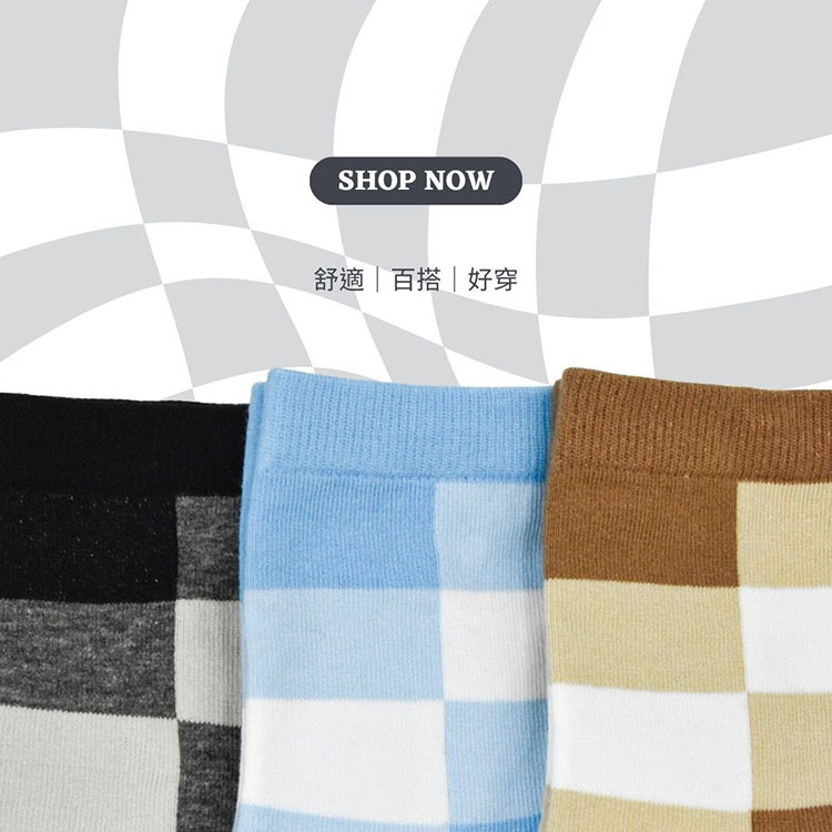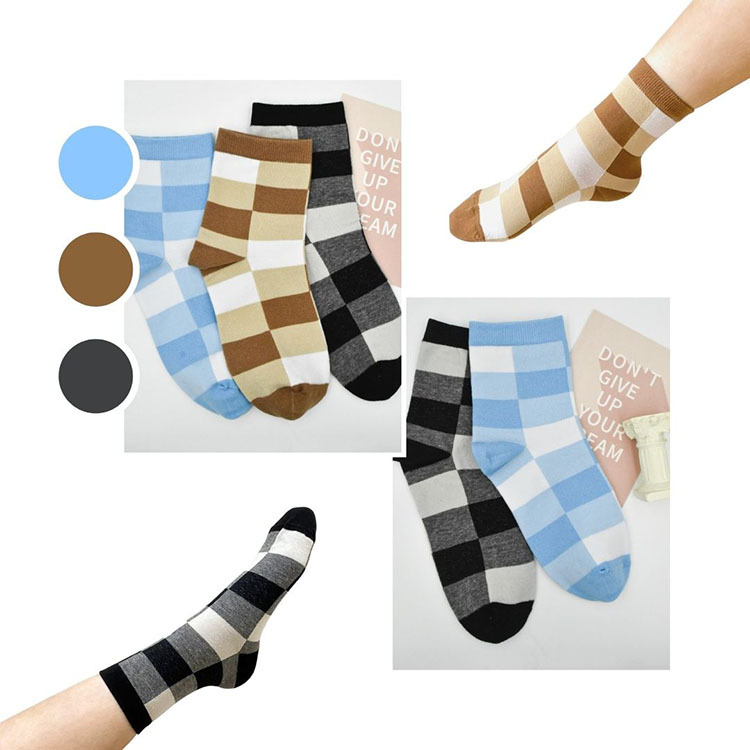 格子少女襪採用柔和格紋設計,推出黑白、焦糖棕、天空藍、珊瑚粉、霧藍與抹茶綠配色,彈性佳、透氣親膚,無痕縫線不勒腳,並具消臭效果,日常穿搭舒適又可愛。