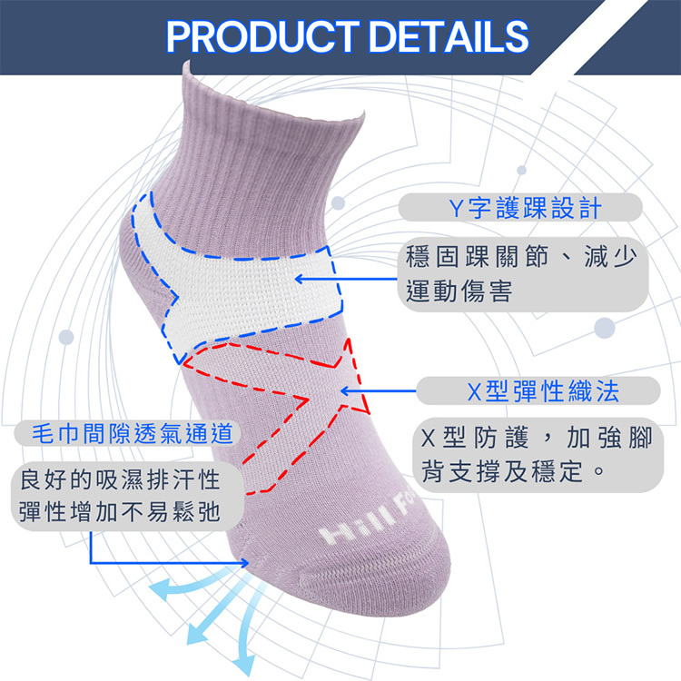 ☑ X 型彈性織法:加強腳背支撐及穩定