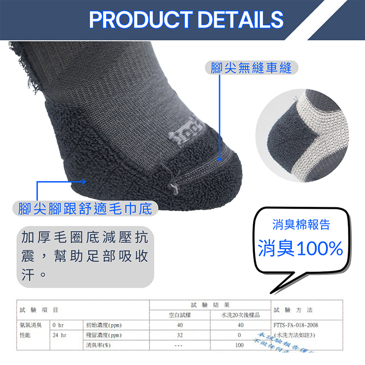 ☑ 除臭功能:使用專利消臭紗線,減少異味