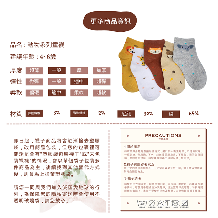以森林動物為靈感,設計出五款童襪角色:
