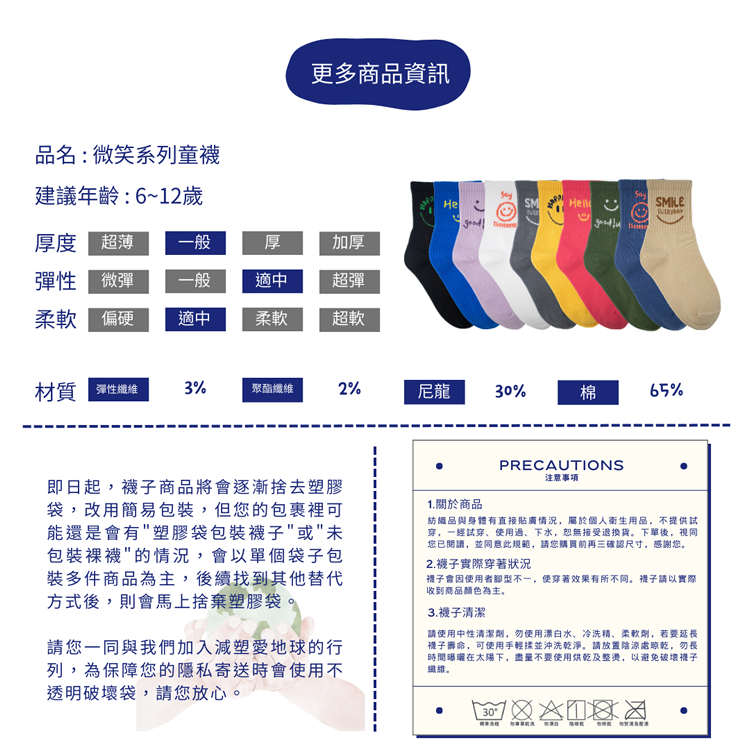 臺灣製造,加上無痕縫線的襪機技術,讓每一步都充滿愛與關懷。